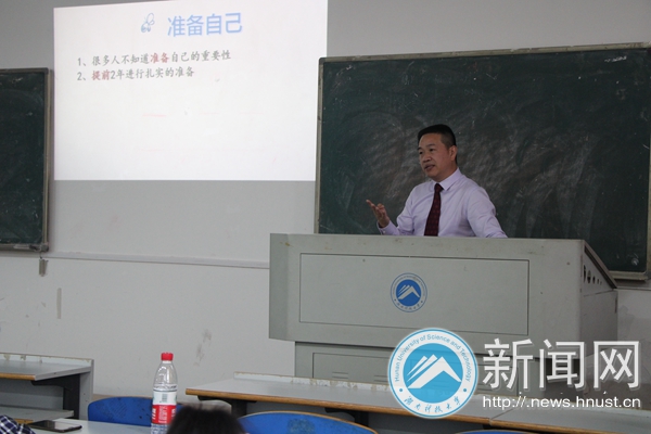 王先华老师所做的题为“认准方向,准备自己,拾级而上”的讲座同样非常精彩。王先华从认识自己、准备自己、发展自己三个方面进行介绍。讲座伊始,王先华讲述了自己的教师工作经历,从年轻时代自身对教师工作的认识、选择,到坚定自我,为中学生物学教师专业发展不断做准备,坚持留心生活和大自然,培养自己的教育情怀,积极参与教学竞赛活动,最后抓住机遇,拾级而上,从岳阳的乡镇老师中脱颖而出,到长沙市一中就职,从而进一步发展自身专业素养,实现教育理想。通过对自身经历的讲述,王先华为面临就业的同学们提出了几点建议:第一,谨慎选择,每个行业都是不容易的,对于教师这个行业也是如此,同学们认准方向之后便不能轻言放弃;第二,准备自己,想要获得好的就业岗位需要提前两年进行扎实的准备,在教学中要有特长;第三,拾级而上,从低起点凭借自己的努力勇于抓住机会提升到更高的平台,不断提升自己。