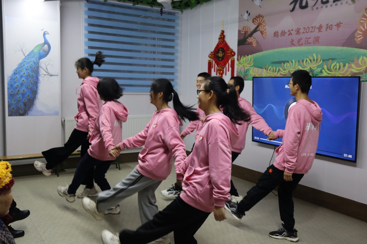 紧接着,我们为爷爷奶奶们表演了排练已久的节目,我院志愿团的小团子们深情演唱了歌曲《少年》、《栀子花开》并跳了广场舞《酒醉的蝴蝶》和手势舞《听我说谢谢你》,机电工程学院志愿团则带来了《三句半》、黄梅戏、舞蹈串烧和大合唱《我和我的祖国》,最后小团子们还和几位奶奶学习跳了广场舞。