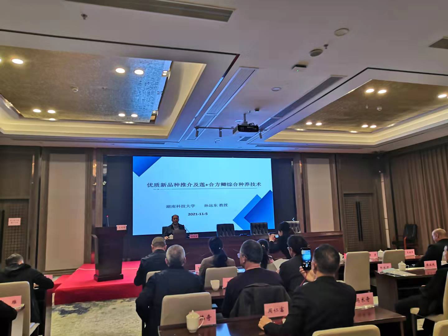 2021年11月5日,生命科学学院孙远东教授应邀给“湖南‘农广助农’工程湘潭莲(稻)渔综合种养产业领军人才培训班”学员授课。