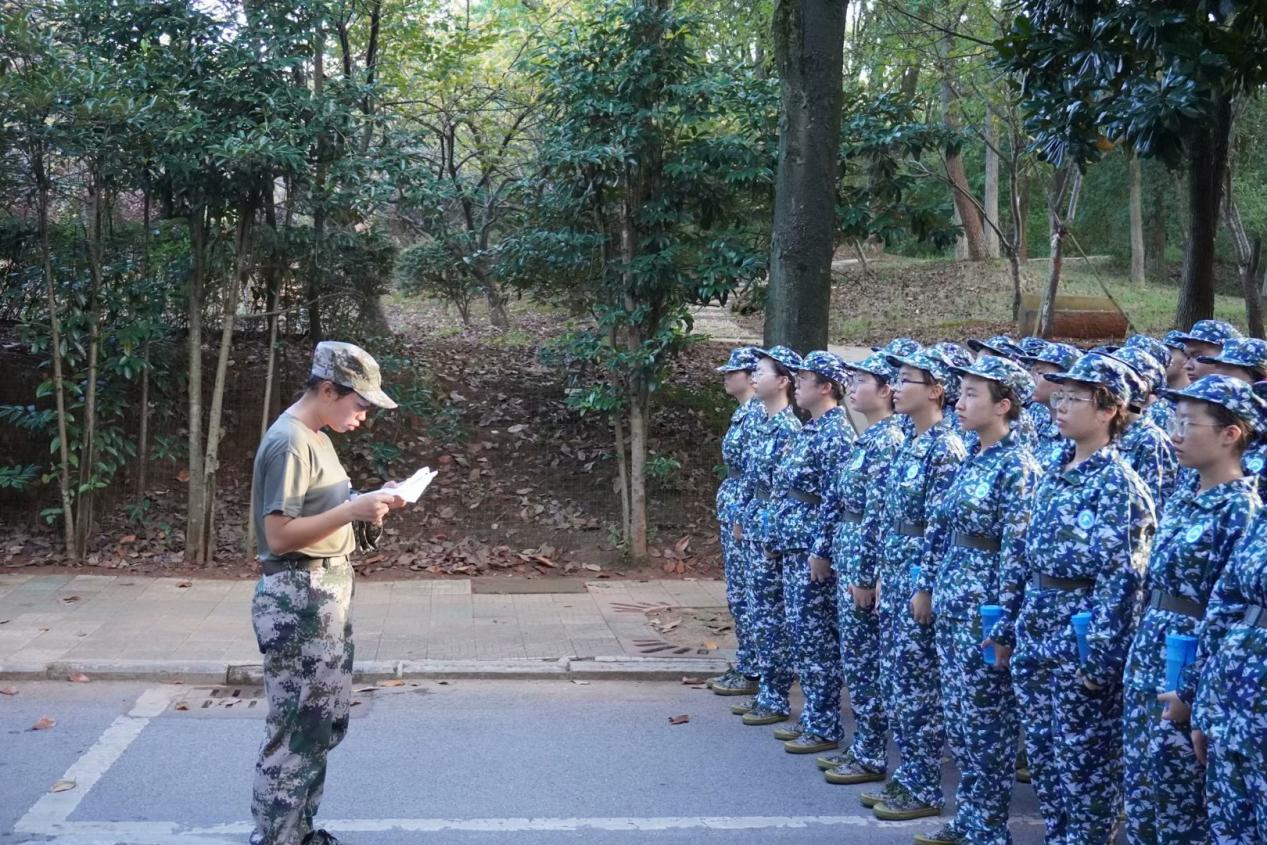 教官们步伐整齐地进入训练场,展示了军人的风采。五位教官强调了军训期间应该注意的安全问题、着装问题和内务整理等,希望同学们能够严于律己、听从指挥,严格遵守军训条令条例,以标准军人的姿态来对待本次军训。紧接着,教官们带领新生学唱校歌,同学们认真齐唱着“唯实惟新承教泽,志诚致志争贤良”,歌声回荡在整个训练场 。