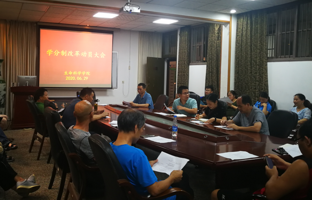 6月29日上午10:00,生命科学学院在生物楼105会议室进行了学分制改革动员大会,学院全体院领导和教职工参会。会议由教学副院长周定港主持。