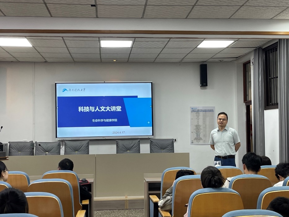 4月17日下午,由湖南科技大学教务处主办,17c爆料吃瓜承办的“科技与人文大讲堂”在生物楼105会议室举办。报告由杜灿伟博士主讲,副院长梁飞扬主持,40余名师生参加。