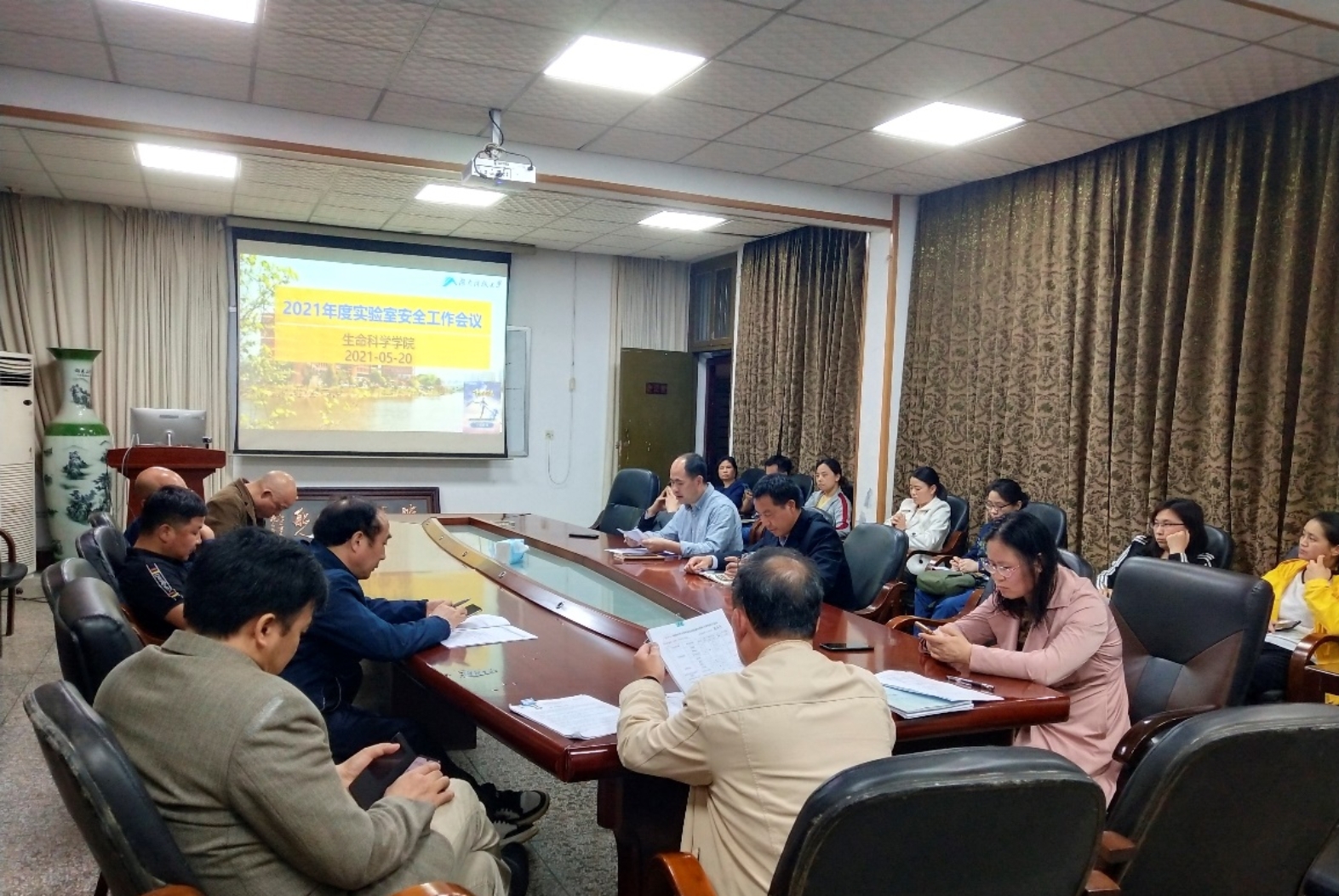 5月20日下午,学院召开2021年度实验室安全工作会议,会议由副院长孙远东教授主持,院长王海华教授、院党委书记严明理教授等院领导、实验教学中心人员、重点实验室安全管理人员以及全体研究生导师出席会议。